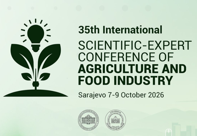 We are honoured to invite you to participate in the 35th Edition of the International Scientific-Expert Conference of Agriculture and Food Industry (Agriconference), which will be held in Sarajevo, Bosnia and Herzegovina, between 7th and 9th October 2026.